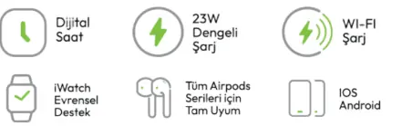 AG-W19, 5’i 1 arada kablosuz şarj istasyonu, dijital saat ve ekran programı ile size hem şık hem de pratik bir çözüm sunuyor. AG-W19 sayesinde, telefonunuzu, saat ve kulaklık gibi kablosuz şarj cihazlarınızı aynı anda ve kolayca şarj edebilirsiniz. Dijital saat ve ekran programı ile şarj durumunu takip edebilirsiniz. Ayrıca şık bir gece lambası ve telefon tutucudur.
