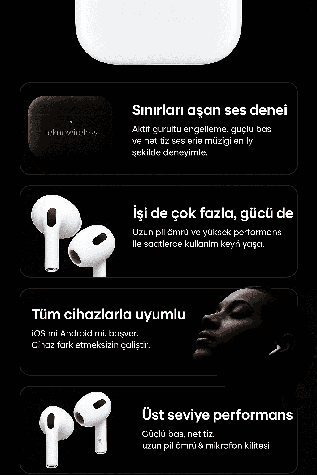 Ergonomik Tasarım(Her Kulağa Uygun): yapınıza tam oturacak şekilde tasarlanmış ileri seviye yeni nesil kablosuz kulaklık modelir.