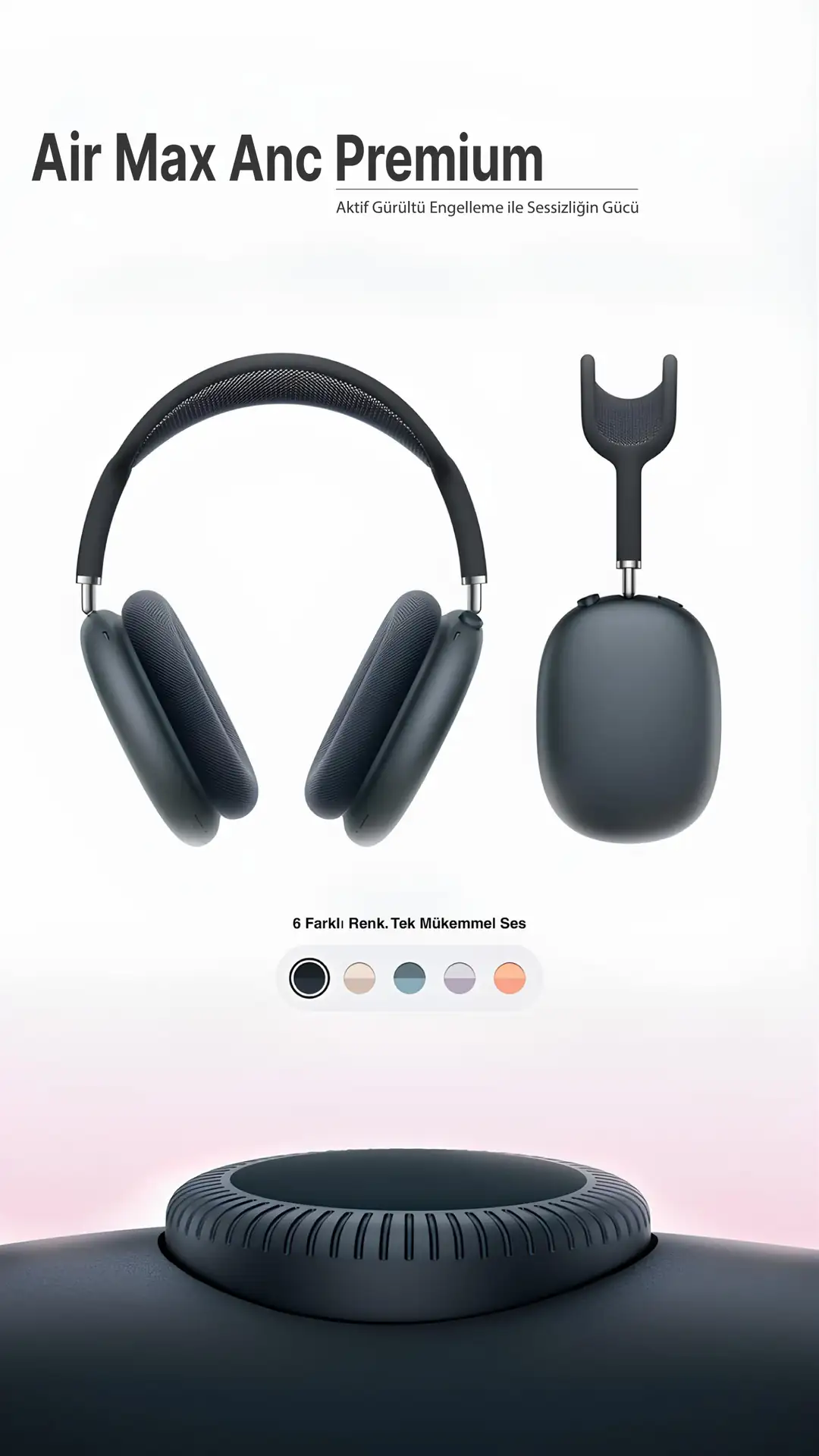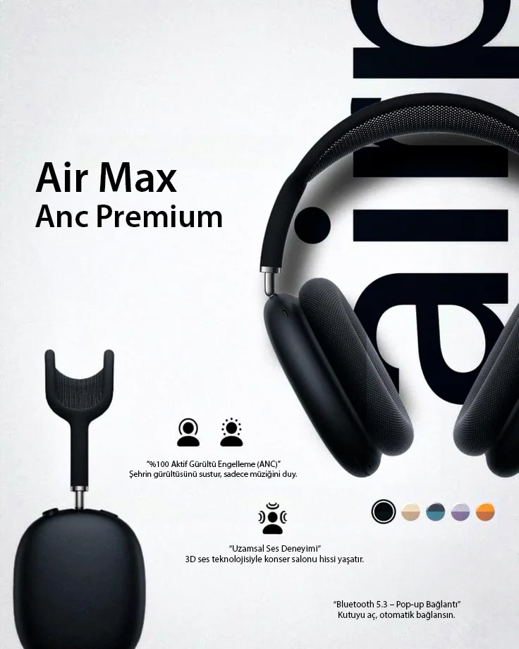 Air Max ANC Premium Mıknatıslı Ped ve Manyetik Kılıflı Kablosuz Kulak Üstü Kulaklık – Koruma Kılıfı Hediye!